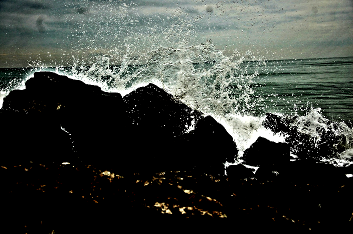 “Here, my darling. This stone is shaped just as a cushion for your gentle cheek.” Pulling it from the sucking clay and detritus of smashed shells, he lifts and moves it toward one of the women but her head no longer rests near him. Fading sunlight and the weakness of the moon barely illuminate the white dress and body drawn by backwash into the maw of the next surge.