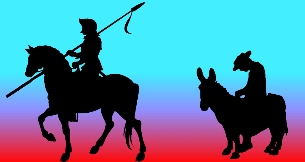Then something happened. If there’s one thing I hate more than boredom it’s surprises. A knight turned up and was ushered by staff into the reception room. He announced he was looking for a squire. The conversation was a bit fraught because I thought a squire was a shape with four sides but, one way or another, I ended up riding behind him on a donkey.